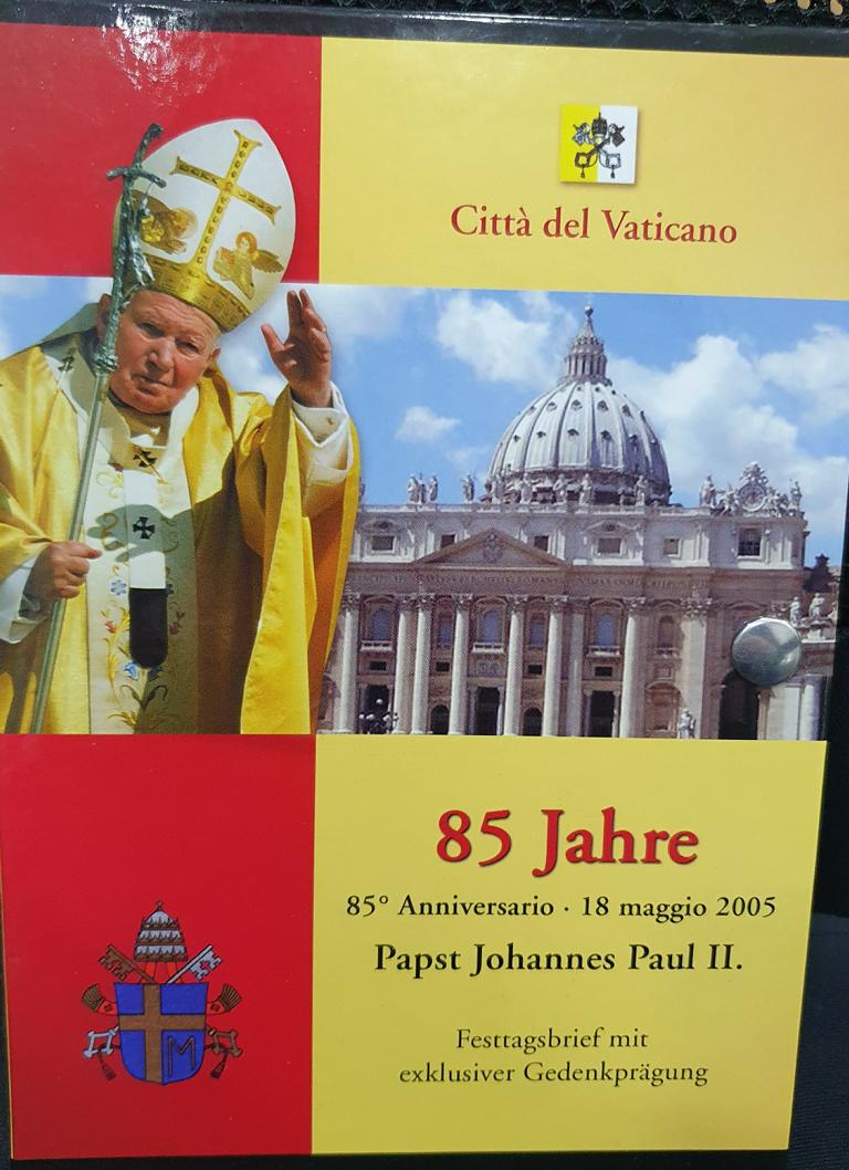 Papst Johannes Paul II - 85 Jahre - Festtagsbrief mit exclusiver Gedenkprägung, Reppa im Hartfolder