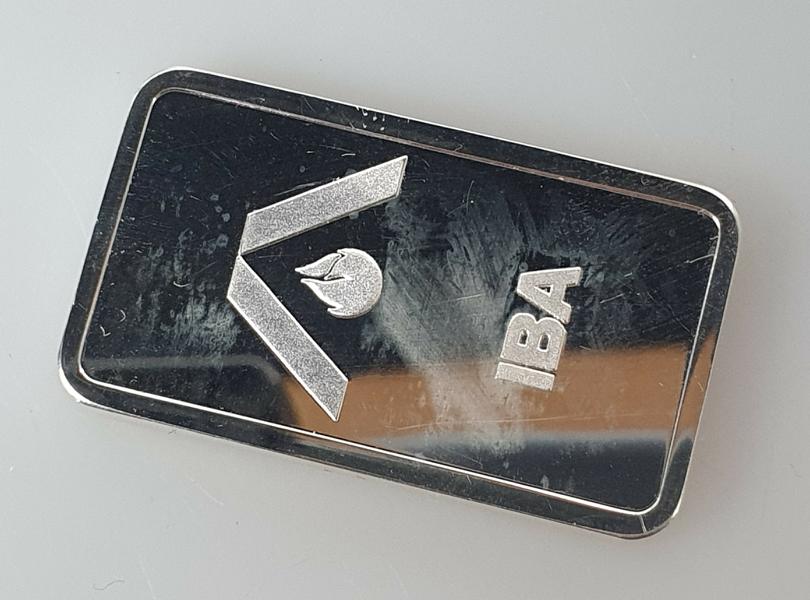 Historischer Degussa Silberbarren 1 oz, Feinsilber 999 in OVP, Rückseitenmotiv