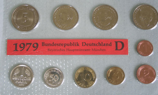 Kursmünzsatz 1 Pfg bis 5 DM BRD Stempelglanz in Noppenfolie 1979 D