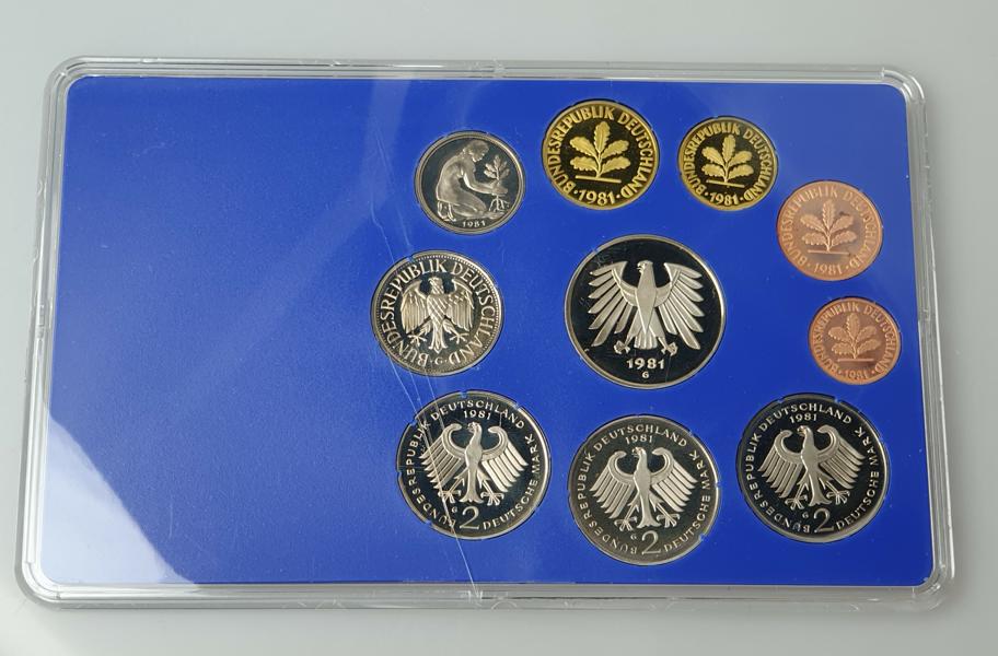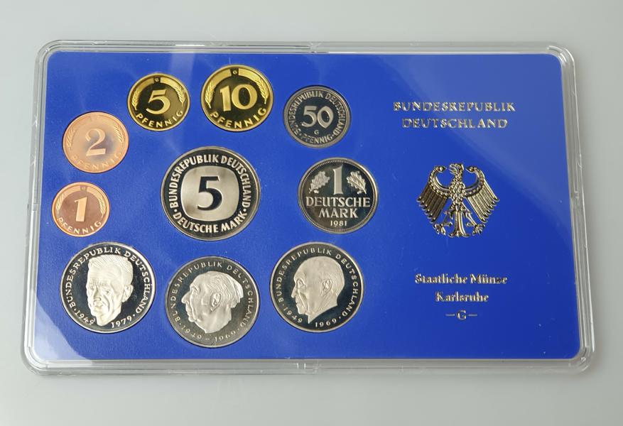 Kursmünzsatz DM 1981 G -Karlsruhe- 1 Pfg bis 5,- DM in polierter Platte PP