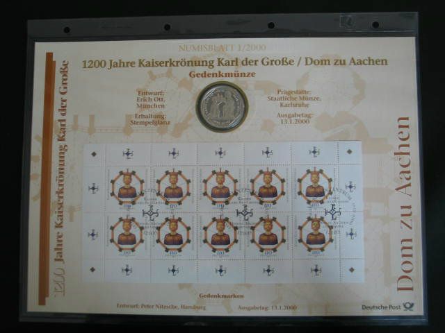 Numisblatt 1/2000 mit Gedenkmünze 10 DM Kaiserkrönung Karl der Große im Dom zu Aachen