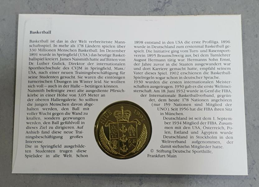 Numisbrief mit Niue 5 Dollar 1991, 100 Jahre Basketball, Neusseland