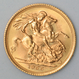 Sovereign "Elisabeth II" 1968, "Haarband", Großbritannien, 916,7 Gold, London