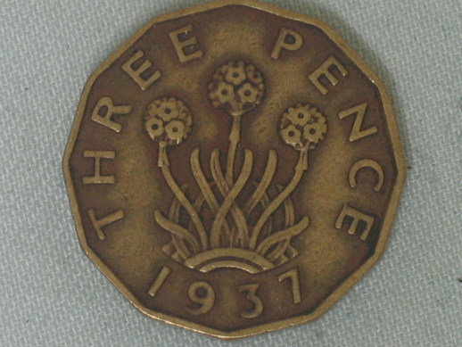 Three Pence "George VI" 1937 aus Nickel / Messing