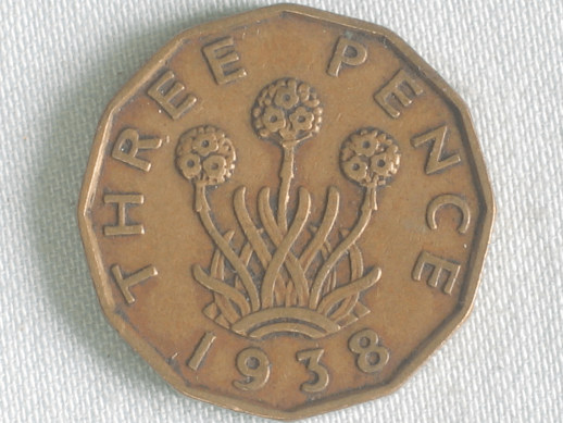Three Pence "George VI" 1938 aus Nickel / Messing