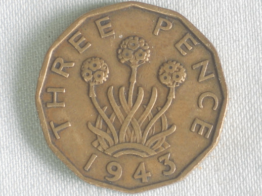 Three Pence "George VI" 1943 aus Nickel / Messing
